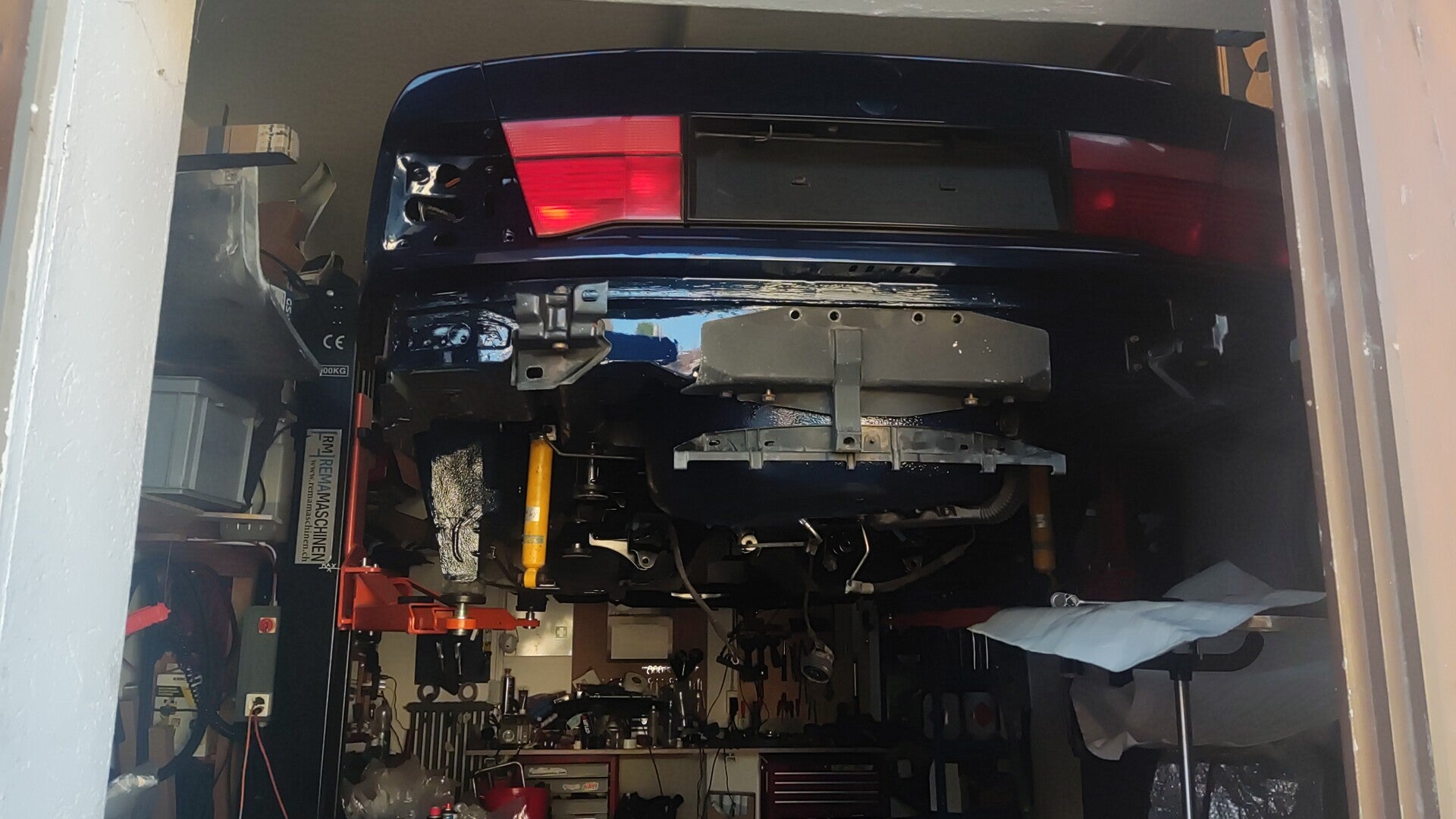 Heckansicht mit neu gepulverten Hinterachse, neuen Bilstein Stossdämpfern
